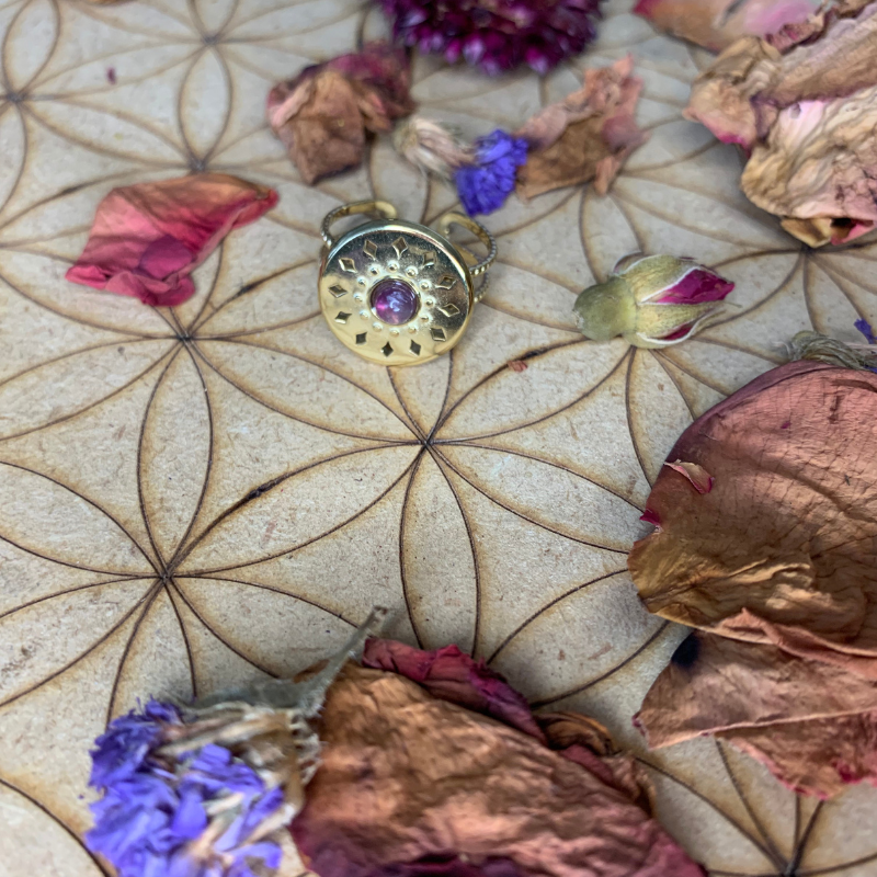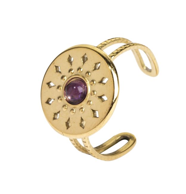 Raffinée et vibrante, la bague Améthyste associe la douceur d’une pierre naturelle du Brésil à l’éclat doré de l’acier inoxydable. Symbole de sérénité et d’intuition, l’améthyste invite à l’apaisement du mental et à l’équilibre émotionnel.