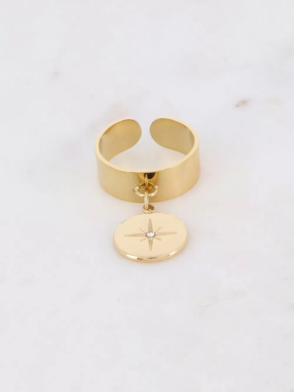 Inspirée par la lumière des astres, la bague Sirius incarne la magie et la protection céleste. Son médaillon rond, délicatement orné d’une étoile scintillante, évoque la guidance et la confiance en son chemin.